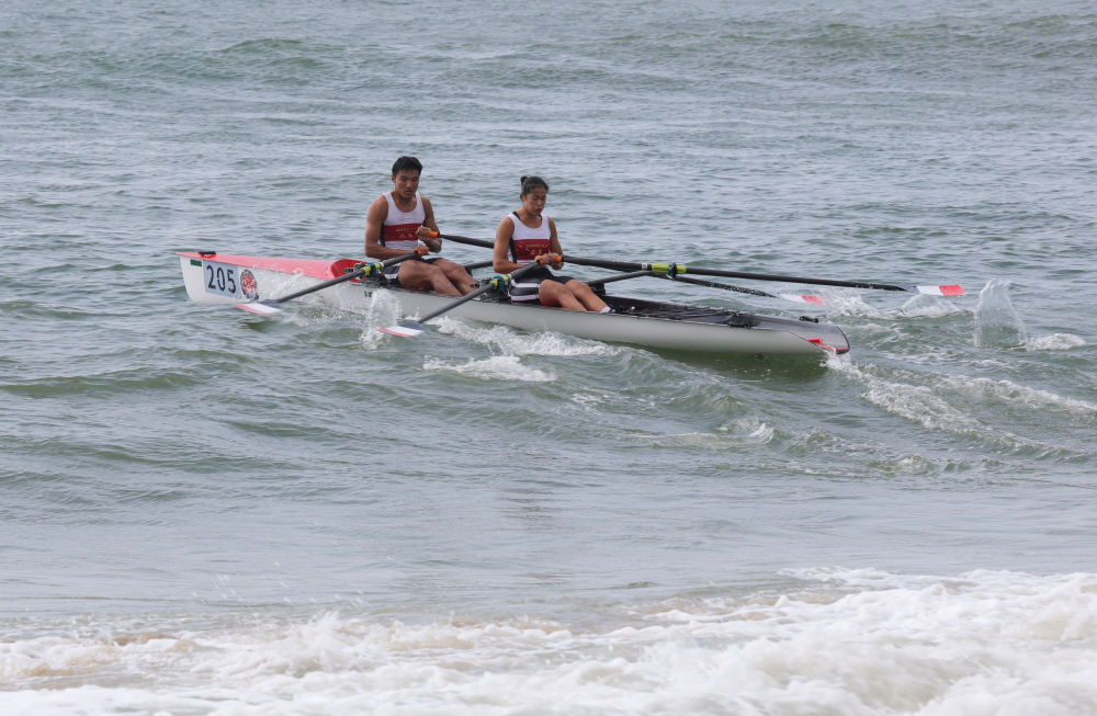新华网阳江11月16日电(记者邓瑞轩)在16日举行的全国沿海赛艇比赛混合双人双桨决赛中,王云飞、张桂平组成的广东队以1.6秒的微弱优势击败李志金、蒋英华组成的福建队,获得该项赛事冠军。这是今年沿海赛艇首次纳入全国比赛正式比赛项目以来获得的首枚金牌。 11月16日,广东队王云飞(左)、张桂平二人组参赛。新华社 李兰 摄 与传统的静水赛艇不同,沿海赛艇通常在公海、海湾和河口进行,要求运动员具备较好的操纵技术、适应能力和体力。同时,风、浪、流等自然因素的影响,使比赛环境更加多样、宜人。该项目还将在 2028 年洛杉矶奥运会上首次亮相恩赫莱斯奥运会。当天,阳江市海陵岛沿海赛艇比赛场地不断遭遇暴风雨袭击,给各参赛队伍带来了一定的挑战。 “这个项目肯定会有风浪,目前我们已经进行了针对性的训练,特别注重波浪租赁等细节。”广东沿海赛艇队教练李家豪说。最终,广东队王云飞、张桂平凭借稳定的发挥和出色的冲刺,以2分37.39秒的成绩获得冠军。福建队李志进/蒋英华以仅1.6秒的差距获得第二名。同样来自广东的米浩轩/王森以2分34秒的成绩获得铜牌。 11月16日,广东队冠军双人组合王云飞(右四)和张桂平(右五),福建省队亚军组合李志金(左二)和蒋英华(第三位)颁奖典礼上,广东省队第三名米浩帅(右一)、王森(右二)与教练合影。新华社提供 李兰 “我感觉不能辜负大家这些年的努力,希望我们每个人都敢于拼搏,坚持下去。”张桂平表示,下次他想实现更高的目标,有机会参加2028年洛杉矶奥运会。根据赛程安排,沿海赛艇项目将产生男子单人双桨和女子单人双桨两枚金牌。将于17日决定。